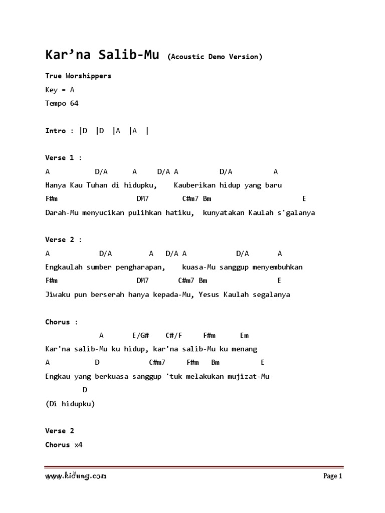 Intro Hanya Kau Tuhan dihidupkuKau berikan hidup yang baru DarahMu menyucikan pulihkan hatikuKunyatakan Kaulah segalanya Engkaulah sumber pengharapan KuasaMu sanggup. Create and get 5 IQ. Chord Kunci Gitar Karna SalibMu Verse 1.